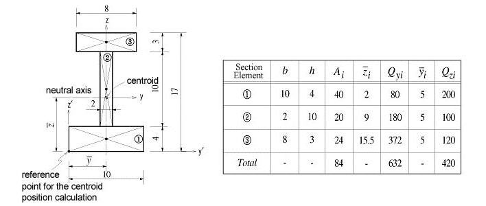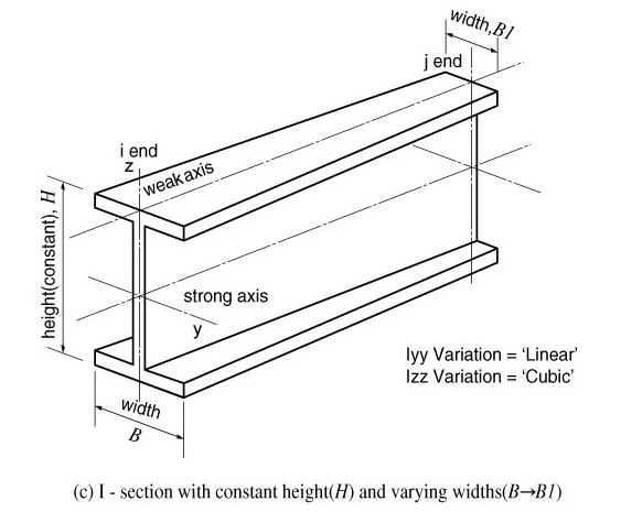 The shear deformations are neglected if the effective shear areas are not specified. Cyp, Cym, Czp and Czm are used to calculate the bending stresses. Qyb and Qzb are used to calculate the shear stresses. Peri is used to calculate the Painting Area.