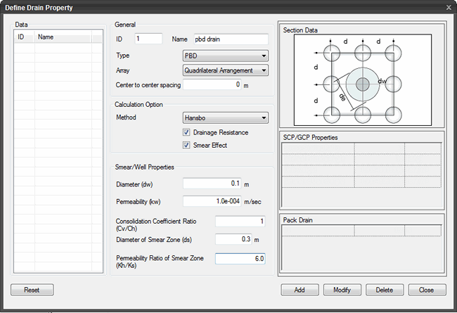 smearing effect (ground disturbance) and well resistance (Drainage Resistance: