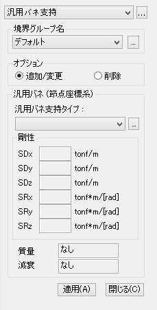 汎用バネ剛性の形式 : 既に定義された一般節点剛性の中で、入力しようとする