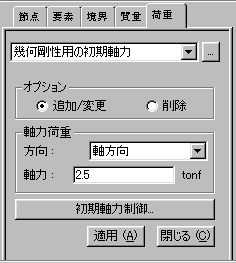 メインメニューから 荷重 > 幾何剛性用の初期軸力...