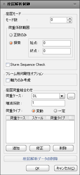 座屈解析はP-デルタ解析や固有値解析と同時に使用することができません。