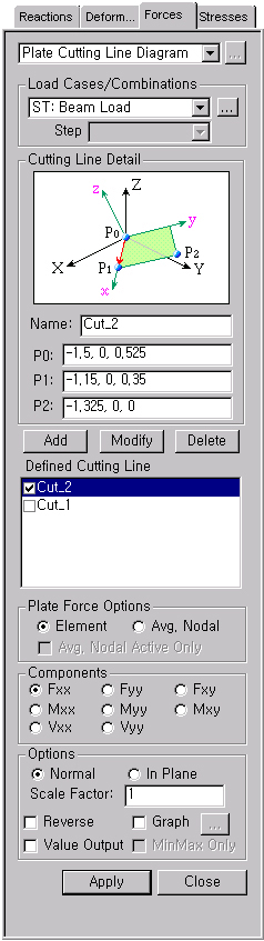Main Menu¿¡¼ Results > Forces > Plate Cutting Line Diagram