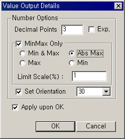 Value Output : ¼öÄ¡·Î Ãâ·Â MinMax Only : Value OutputÀ» ¼±ÅÃÇÑ °æ¿ì ÃÖ´ëÃÖ¼Ò°ª¸¸ Ç¥Çö |