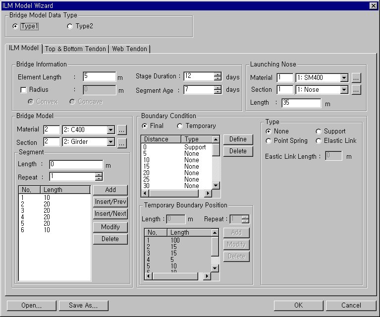 Wizard ±â´ÉÀ» ÀÌ¿ëÇÑ ILM ±³·® ¸ðµ¨¸µÀº µÎ°³ÀÇ Wizard(ILM Bridge Model Wizard, ILM Bridge Stage Wizard) °úÁ¤À» °ÅÃļ ÀÛ¼ºÇÕ´Ï´Ù. ILM Bridge Model Wizard¿¡¼´Â ÅÙ´øÀÇ ¹èÄ¡ ¹× ´Ü¸éÁ¤ÀǸ¦ Æ÷ÇÔÇÏ¿© ½Ã°ø´Ü°è ÇØ¼®¿¡ ÇÊ¿äÇÑ ¸ðµ¨µ¥ÀÌÅ͸¦ ÀÚµ¿»ý¼ºÇϰí, ¾ÐÃâ´Ü°è¸¦ Æ÷ÇÔÇÑ ½Ã°ø´Ü°è´Â "ILM Bridge Stage Wizard" ¿¡¼ Á¤ÀÇÇÕ´Ï´Ù.