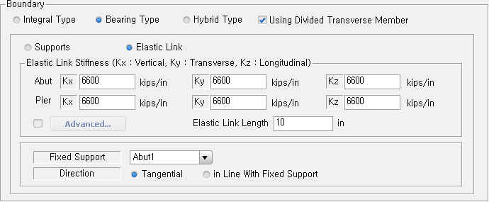 Spring Support : Spring °æ°è·Î ó¸®. ¼öÁ÷/¼öÆò ¹æÇâ Spring »ó¼ö¸¦ ÀÔ·ÂÇØ¾ß Çϸç, °¢ ÁöÁ¡º° Spring »ó¼ö°¡ ´Ù¸¥ °æ¿ì¿¡´Â ¸¦ ÀÌ¿ëÇÕ´Ï´Ù.