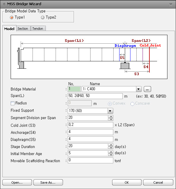 MSS Bridge Wizard¿¡¼ *.wzd ÆÄÀÏ·Î ÀúÀåÇÑ µ¥ÀÌÅ͸¦ ºÒ·¯ µéÀÌ´Â ±â´ÉÀÔ´Ï´Ù. ÀÌ ±â´ÉÀ» ÀÌ¿ëÇϸé midas Civil À» ´Ù½Ã ½ÇÇàÇÑ ÈÄ, Wizard ³»¿¡¼ ±âÁ¸ÀÇ ÀÔ·ÂÇÑ µ¥ÀÌÅÍ ¼öÁ¤ ¹× È®ÀÎÇÒ ¼ö ÀÖ½À´Ï´Ù.