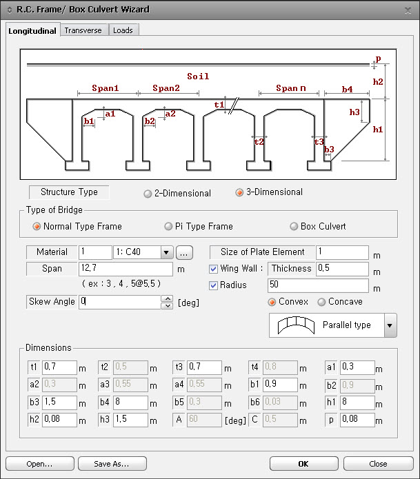 R.C. Frame /Box Culvert Wizard¿¡¼ *.wzd ÆÄÀÏ·Î ÀúÀåÇÑ µ¥ÀÌÅ͸¦ ºÒ·¯ µéÀÌ´Â ±â´ÉÀÔ´Ï´Ù. ÀÌ ±â´ÉÀ» ÀÌ¿ëÇϸé midas Civil À» ´Ù½Ã ½ÇÇàÇÑ ÈÄ, Wizard ³»¿¡¼ ±âÁ¸ÀÇ ÀÔ·ÂÇÑ µ¥ÀÌÅÍ ¼öÁ¤ ¹× È®ÀÎÇÒ ¼ö ÀÖ½À´Ï´Ù.