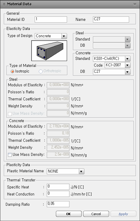 KS-Civil(RC)´Â CGS ´ÜÀ§°è·Î Á¤ÀÇµÈ ÀçÁúÀ̰í, KS08-Civil(RC)´Â SI´ÜÀ§°è·Î Á¤ÀÇµÈ ÀçÁúÀÌ´Ù. ¼³°è±âÁØÀÇ ´ÜÀ§°è º¯°æ¿¡ µû¸¥ Àç·áÀÇ ¼³°è±âÁذªÀ» ¹Ý¿µÇÏ¿´´Ù.