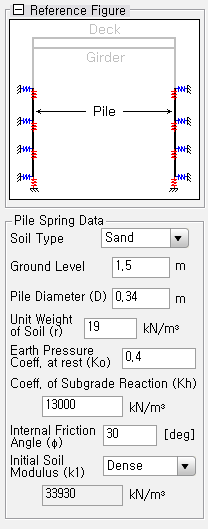 Broms(1971)¿¡ µû¸£¸é Integral BridgeÀÇ ±âÃÊ ¹è¸é Áö¹ÝÀÇ È¾¹æÇâ º¯À§¿Í Ⱦ¹æÇâ ÀÀ·ÂÀº À§ÀÇ ±×¸²°ú °°Àº °ü°è¸¦ °®°í ÀÖÀ¸¸ç, ´ÜÀ§¸éÀû´ç °¼ºÀº ´ÙÀ½°ú °°ÀÌ °è»êÇÕ´Ï´Ù.