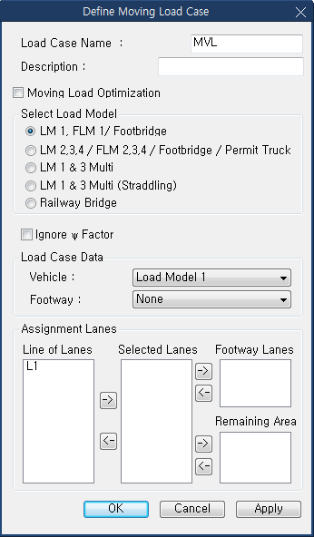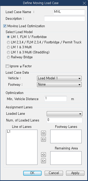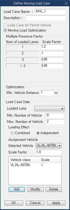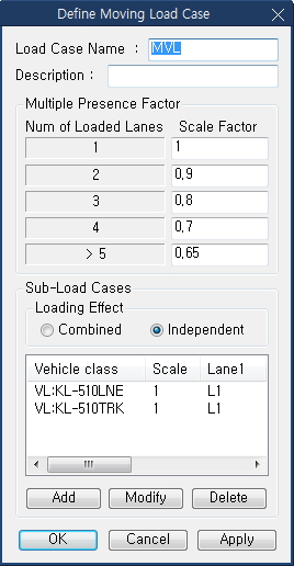ÇÏÁß±âÁØ(KOREA, AASHTO Sandard, AASHTO LRFD µî)¿¡ µû¶ó ´ÙÂ÷¼± µ¿½Ã ÀçÇϽà °¨¼Ò°è¼ö(Multiple Presence Factor)°ªÀ» Default·Î µÇµµ·Ï °³¼±ÇÏ¿´´Ù.