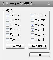 Envelope Max/Min : Steel Design Code¿¡¼ ¼±ÅÃÇÑ ÇÏÁßÁ¶ÇÕ¿¡ ´ëÇØ¼ Max/MinÀ¸·Î¸¸ Ãâ·ÂµË´Ï´Ù.