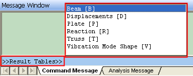 RT¸¦ ÀÔ·ÂÇÏ¿© Result Table(RT)À» ¼±ÅÃÇÏ°í ´Ù½Ã T¸¦ ÀÔ·ÂÇÏ¿© ÇÏÀ§ ±×·ì Truss(T)¸¦ ¼±ÅÃÇϸé, Truss(T) ±×·ì¿¡ ¼ÓÇØÀÖ´Â Command Key¸®½ºÆ®°¡ Ç¥½ÃµË´Ï´Ù.