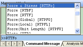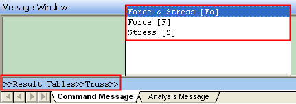 5. Results > Result Tables > Truss > Force & Stress ½ÇÇàÀ» À§ÇØ Command KeyÀÎ 'RTTFo'¸¦ Á¤ÀÇ ÇÕ´Ï´Ù. ÀÌ Key´Â ¾î´À ±×·ì¿¡µµ ¼ÓÇØÀÖÁö ¾ÊÀº Command Key·Î½á Command LineÀÇ °¡Àå »óÀ§¿¡¼ ½ÇÇà °¡´ÉÇÕ´Ï´Ù.
