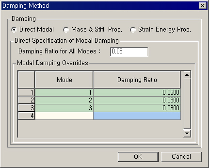 Damping Method : ±¸Á¶¹°ÀÇ °¨¼èƯ¼ºÀ» Á¤ÀÇÇÕ´Ï´Ù.