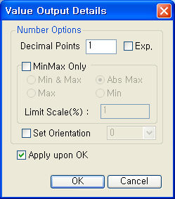 변위, 부재력, 응력 등을 수치로 나타냅니다. 숫자의 글꼴이나 색상은 Display Option 에서 조정할 수