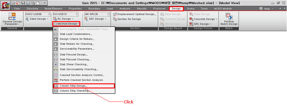 Update Rebar : 배근설계 결과를 모델데이터에 저장합니다. Column Strip Checking에 사용됩니다.