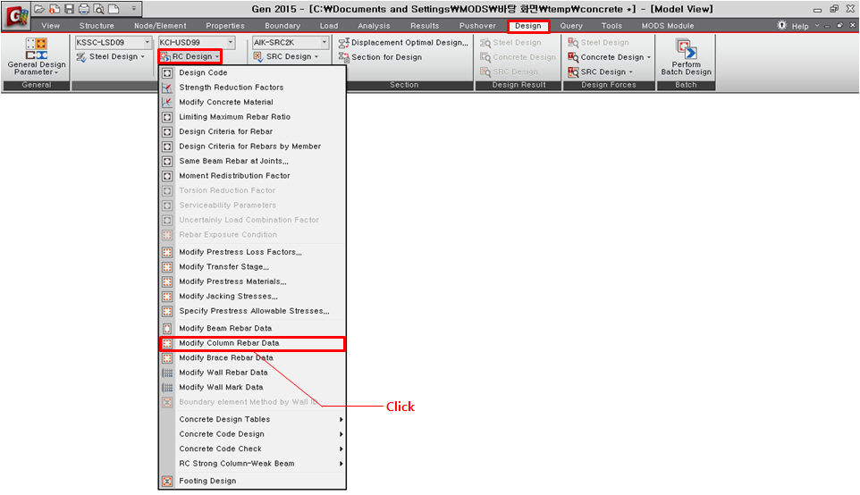 강도검증을 수행하고자 하는 기둥부재의 철근데이터를 입력합니다.