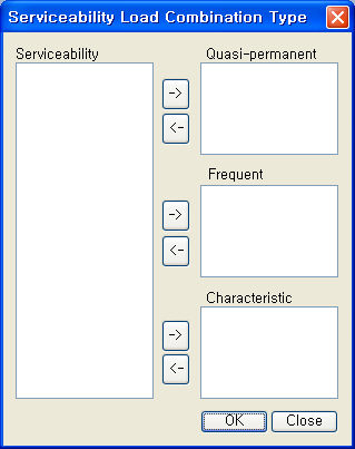 이 기능은 Design Code가 Eurocode2:04로 선택 되었을 경우에만 활성화 되며, 하중조합은 Characteristic, Frequent, Quasi-permanent로 분류할 수 있습니다.