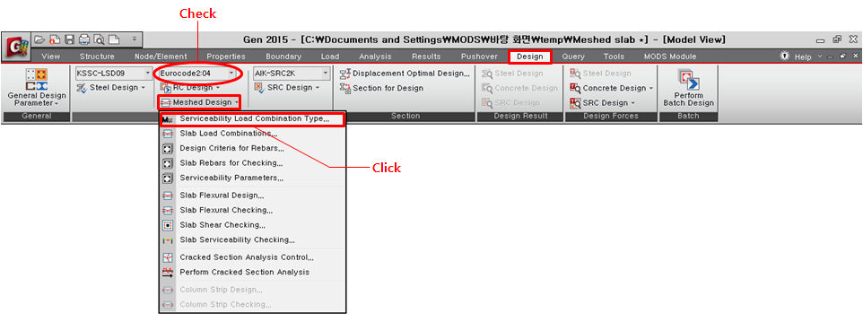 [Design] 탭 > [Design] 그룹 > [Meshed Design] > [Serviceability Load Combination Type]