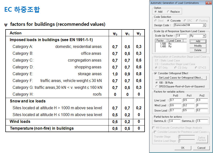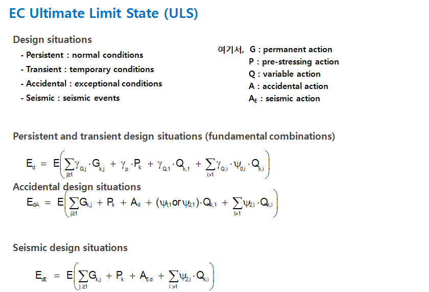 분류 방법과 계산방법에 대한 상세한 설명은 [EN 1990 Basic of Structural Design]을 참고 바랍니다.