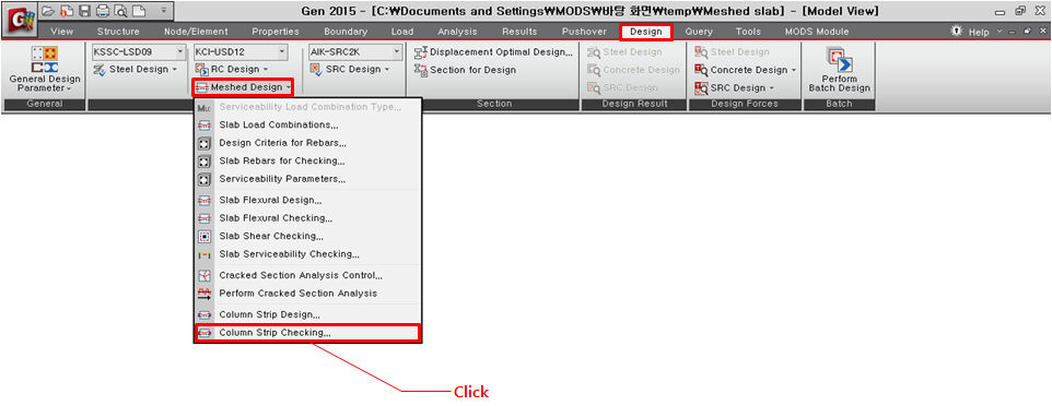 하단의 Slab Design Result 체크박스를 체크하면 중간대 배근결과를 확인할 수 있습니다.