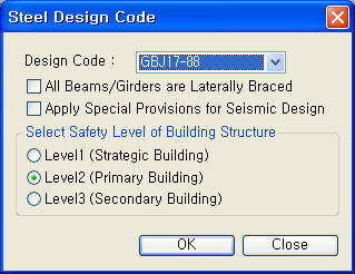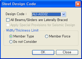 설계기준을 입력하지 않으면 건설기준코드의 강구조 계산규준(KDS 41 31 :2019)을 적용한다.
