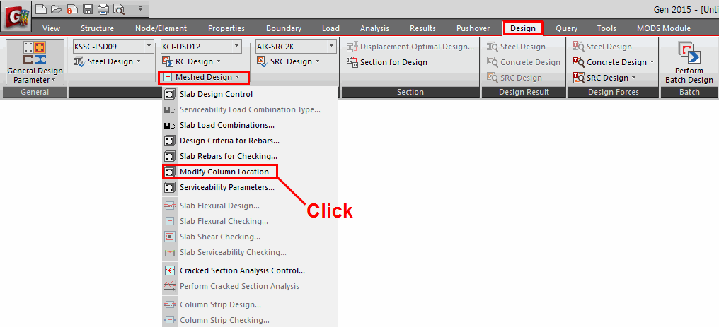 [Design] 탭 > [Design] 그룹 > [Meshed Design] > [Modify Column Location]
