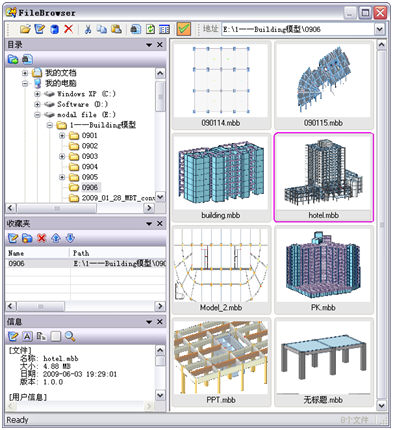 显示当前目录及子目录中保存的结构模型,或显示符合查找条件的模型,方便用户查看和查找模型。
