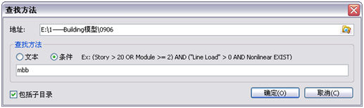 包括子目录:不勾选,则只能查找当前目录下符合条件的结构大师模型;勾选,可查找当前目录及其子目录下符合查找条件的模型。