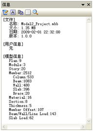 显示并可修改选中的模型文件中包含的项目信息,包括文件信息、用户信息和模型信息。