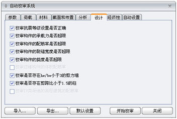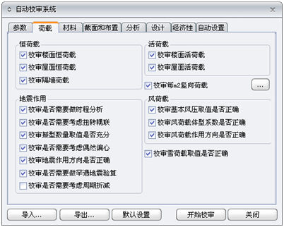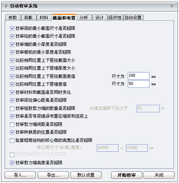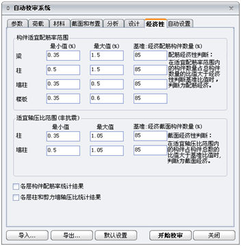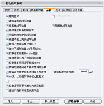 (1)参数:设置建筑物的基本信息和选择校审内容;