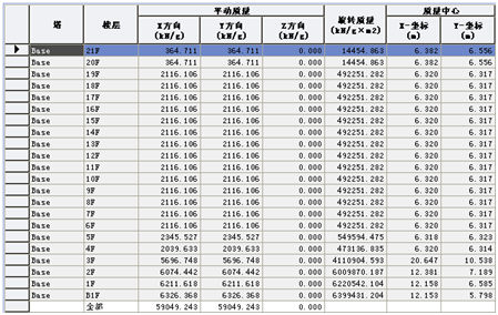 (2)层质量:以表格形式输出各楼层的平动质量、旋转质量及质量中心坐标。