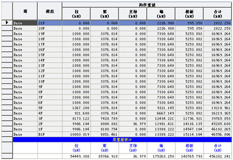 (3)层构件重量:以表格形式输出各楼层的每种构件的重量及层重量统计。
