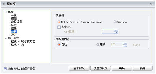 Frontal Sparse G-aussian Solver时才能勾选。当电脑配置了多处理器(或多核)时建议勾选此项,Multi Frontal