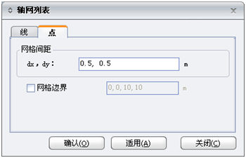 用户设置点网格的网格间距和网格边界。 点网就是在x-y平面上以点的形式显示的网格,方向与x、y轴平行排列。