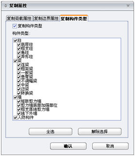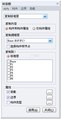 仅构件属性:仅将源楼层的构件属性(荷载、边界、构件类型或构件控制参数)复制到指定的标准层或楼层上,但不复制构件;