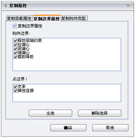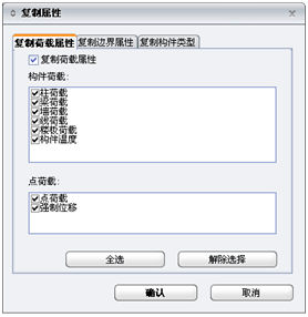 选择需要复制的构件属性,包括荷载、边界、构件类型三项。点击界面上的