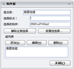自定义一个构件组,使用"按属性选择"功能时,可以调用该构件组,此时该构件组的所有节点和构件均将被选择;在"激活"中使用已命名的构件组进行选择也很方便。使用定义构件组功能,可以帮助用户更方便快捷的观察及处理复杂的三维结构,在结果中可方便的查看该结构组构件的计算结果。