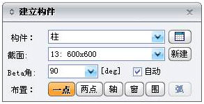 (2)选择柱截面形状 (3)选择Beta角 (4)选择布置方式:窗 (5)窗选需要布置柱的区域