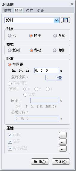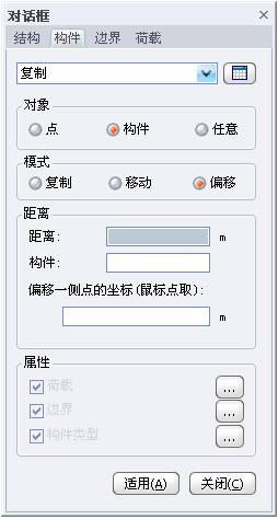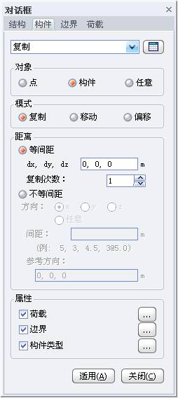 属性:选择偏移时是否同时复制原构件的属性,如:荷载、边界条件和构件调整系数等;