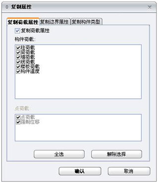 图4.4.2.1-1中的复选框与图4.4.2.1-2对话框上方的复选框是联动的,用户可直接在图4.4.2.1-2对话框中决定是否复制荷载、边界等属性。 |