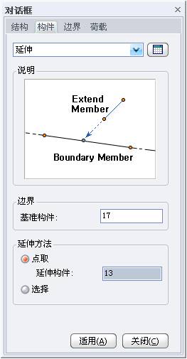 单击输入区后在视图窗口中直接点取延伸构件,或输入构件号点击"适用"按钮;