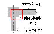多构件参考:一般用于角柱的偏心设置,选中需要设置偏心的柱,点击对话框中“构件1”和“多构件”后的文本框,输入参考构件号并点击“添加/替换”按钮完成偏心设置;或在视图中点选参考构件(柱、梁或墙)完成偏心设置;参考示意图5.3.1-5。