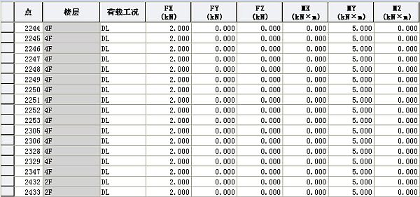 以表格形式显示点荷载值,可以查看和编辑表格中的荷载。