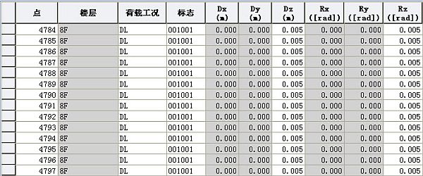 以表格形式显示位移荷载值,可以查看和编辑表格中的荷载。