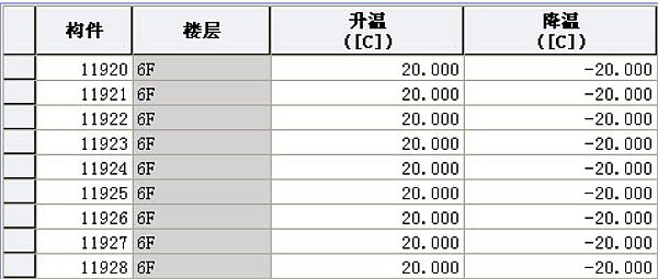以表格形式显示构件温度值,可以查看和编辑表格中的温度荷载。