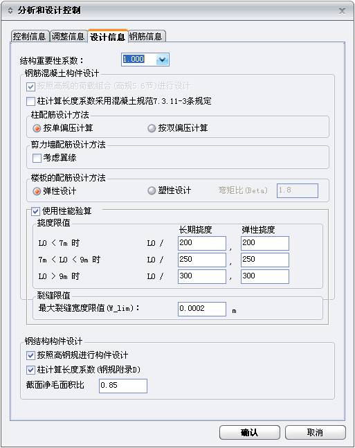 (5)使用性能验算:输入使用性能验算限值;程序默认值如下: