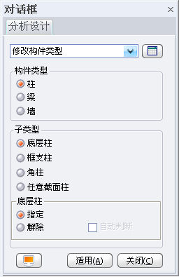 将构件指定为所选的类型;指定后程序将按用户指定的类型进行构件设计