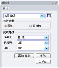 (3)抗震等级:混凝土构件选择抗震等级,钢构件及SRC构件选择设防烈度。选择需要修改的构件,定义好需要修改的抗震等级,点击添加按钮即可。