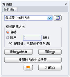(1)自动:按照楼板的形状自动指定楼板的下部钢筋配筋方向,自动设置的原则详见第9.2.1节;